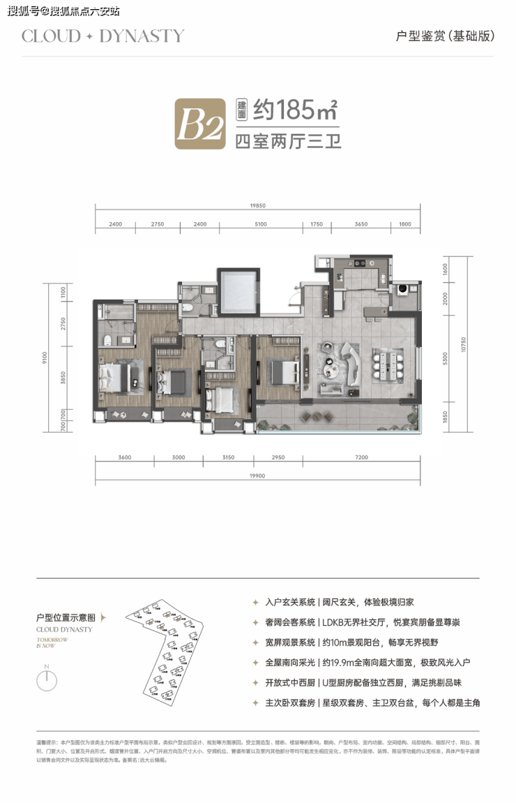 • 主力户型:169-513㎡精装云端大平层,3.15米层高,部分户型配置270°环幕观景阳台。