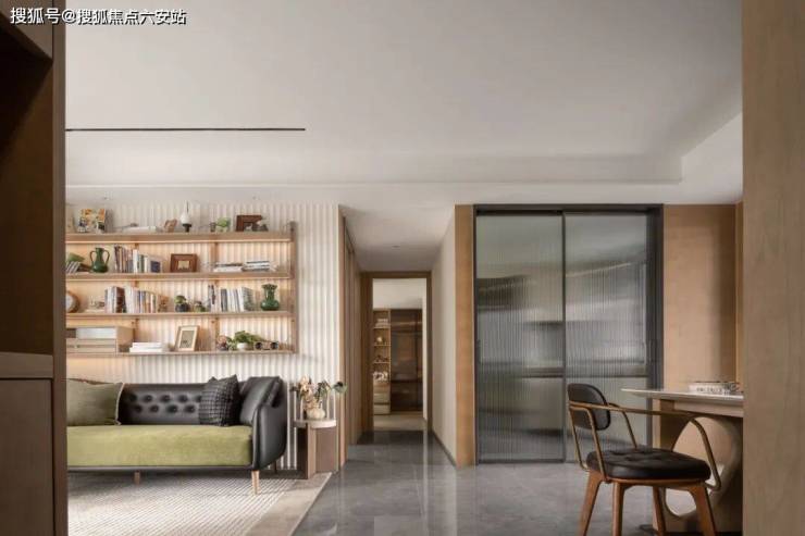 入口处镜面水景与绿植墙,构成了第一重礼序;内部波浪形金属板背景墙,暗合了“湖居”主题。整体调性偏向年轻、科技感,与自然之美的和谐共生,为居者打造出了一片远离喧嚣的净土。