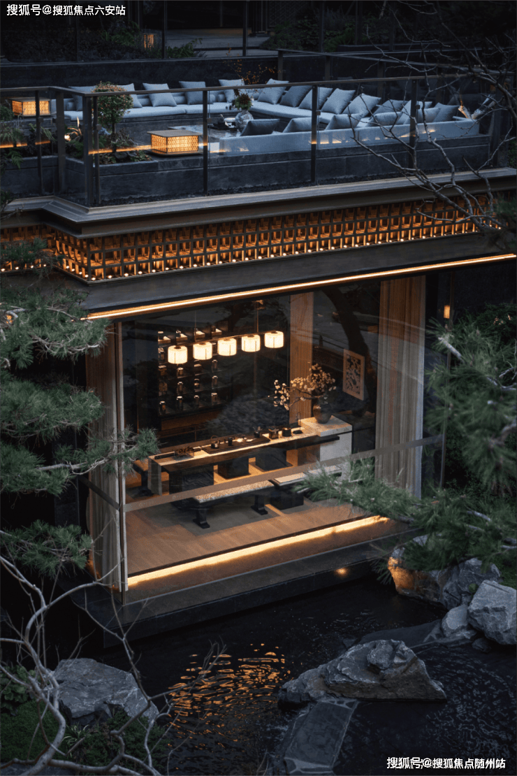 漫步于光影交织的幽静庭院,您将踏入一方充满诗意的天地。潺潺流水映照着婆娑树影,挺拔树姿为这片空间注入向上的生机,纵向延伸出无限的视觉张力。这座下沉庭院,不仅拉近了建筑与自然的情感共鸣,更使室内与景观紧密相连、和谐相融。每一扇窗户,都犹如框中的一幅生动山水画。