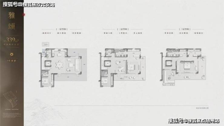 南区55套3层合院由LEAP团队操刀,以平衡对称的宋代建筑审美统摄全局,三面庭院设计将超山梅影、丁山湖光引入窗景,营造“窗含西岭千秋雪”的意境。主力户型213-339㎡叠墅+合院通过空间重构实现功能最大化,L型景观面与环绕式檐廊让自然光景成为生活的一部分。