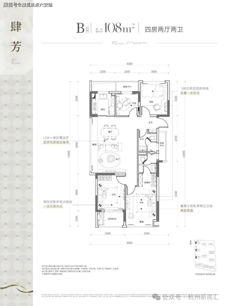 建面约108㎡、120m²的四房边套设计,不仅面积宽敞,南向双卧室+客厅大飘窗的设计也提升了居住舒适度。