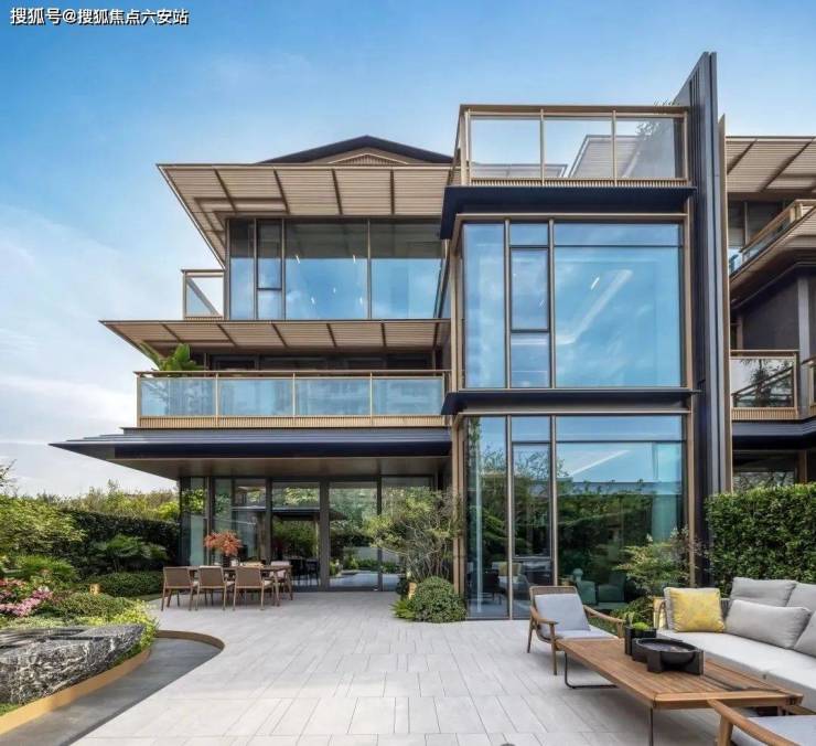 在东方屋檐和宋韵飞檐之上,融揉现代审美工艺,以卓越的窗墙比和大面积灰蓝玻璃,极简化打造光影天幕,倒映自然之境。同时,臻选靛蓝色的陶瓦,原创蓝金坡屋顶,掀起杭州合院立面的新序章。这种设计不仅保留了合院的私密性和围合感,还通过现代建筑手法的运用,让每一户都能享受到更多的自然光和通风。