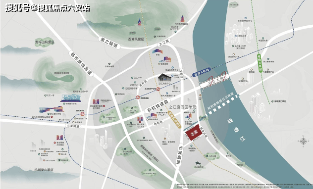 区位:西湖区之江度假区,北倚西湖群山,东临钱塘江(直线约 800 米),拥江发展核心宜居板块