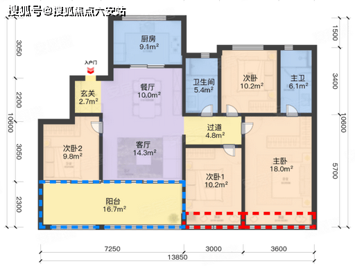 得房率:约 85%-90%,全封闭阳台(计一半面积),赠送约 7.87㎡,实际使用率极高