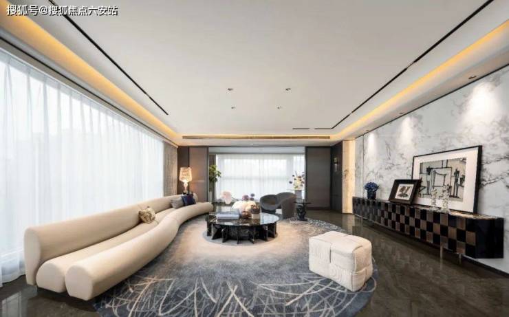 走进家门,是邱德光定制的现代摩登艺术:玄关处,整面渐变曲面艺术玻璃,映射若隐若现的江景;客厅中,钱塘江的柔美曲线,融入弧形吊顶与奢石拼花;19米的超大面宽,以270°环绕视野尽揽钱塘江景,让江河倒影和城市天际线在家中交汇。这是建筑与自然的对话,更是生活与艺术的融合。