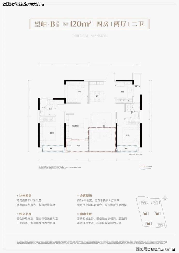 建面约120方户型: