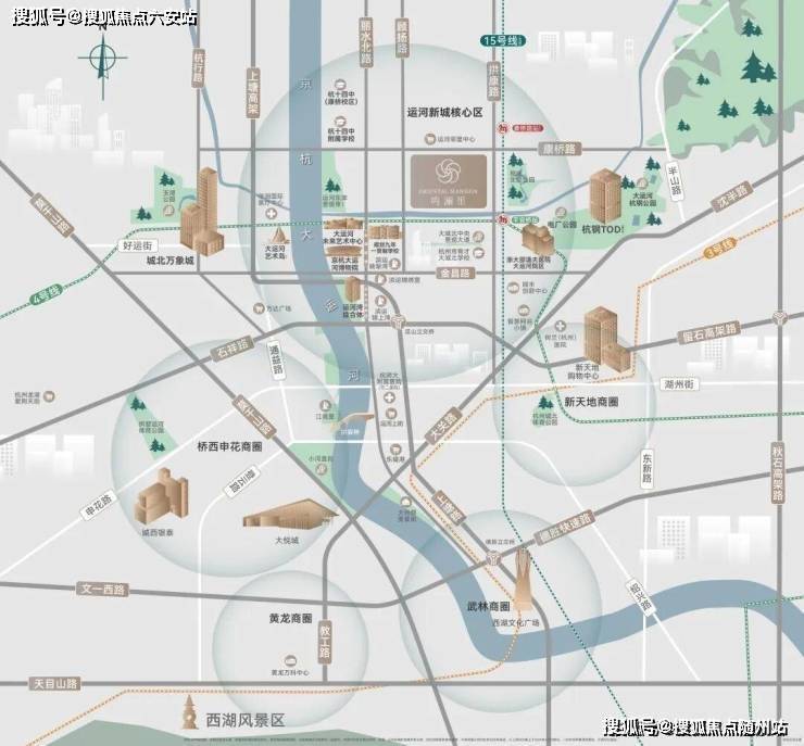 鸣澜里拥有双地铁的绝佳配套:直线距离已经通车的4号线平安桥站约700米,在建的15号线康桥路站约320米,是杭州主城区少有的双地铁新房。