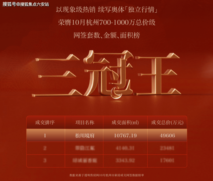 双方合作开发的「奥映鸣翠」与「松川境」两个项目,凭借卓越的产品力与精准的市场定位,强势登顶10月奥体板块网签套数TOP1、TOP2。(统计范围为奥体中心站直距3公里范围内楼盘)
