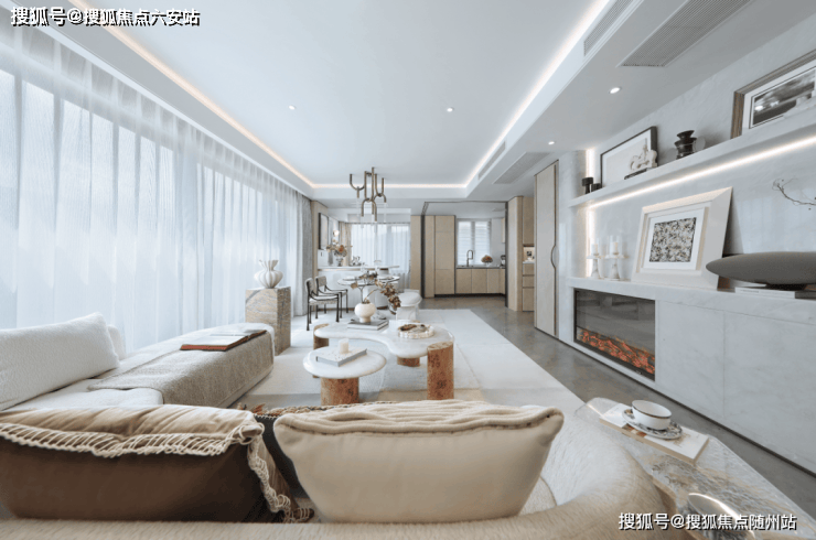 客厅背景墙的吊柜与储物格,展示柜的灯带与玻璃门,为收藏的Labubu提供了最佳舞台。这种“情绪收纳”的逻辑,让每一件物品都找到归属,也让生活回归纯粹。