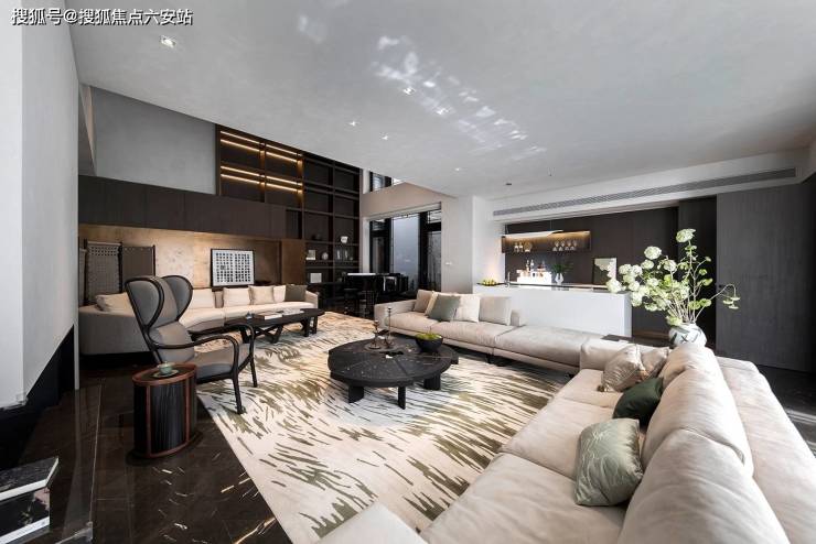 高奢材质炼金术:大量意大利蓝金沙大理石铺陈地面,瑞士瑞族V-ZUG衣物护理管家,瑞族 厨房电器, 意大利Molteni&C旗下的殿堂级现代奢华橱柜品牌ARMANI/DADA,Poliform全屋定制柜体实现毫米级拼缝,将集体出现在私宅空间。