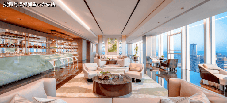 IOC潮鸿在51层打造了耗资1亿元的云端会所,包含会客厅、行政酒廊、茶室、雪茄吧、私宴厅、沙龙六大功能区。5楼还有泳池、健身、SPA、影院及屋顶花园,满足塔尖人群的全方位需求。这种配置不仅满足了顶豪客户的生活需求,还成为了高端圈层与资源的链接标志