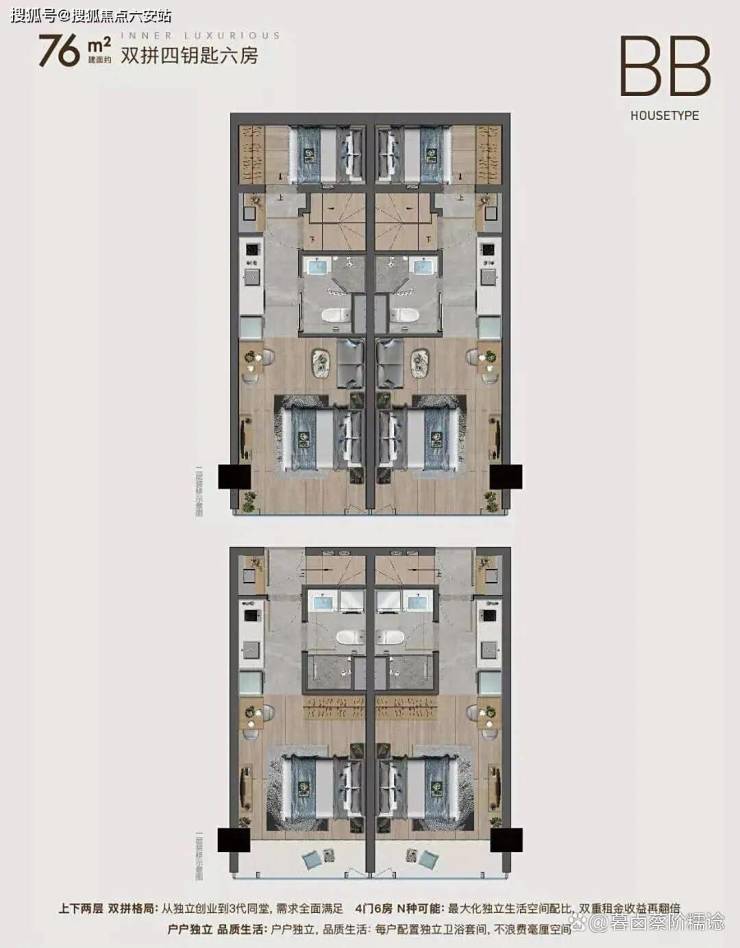 产品类型:主力户型为建面约40-60㎡小户型,适合刚需和投资客,得房率高,空间利用率强。