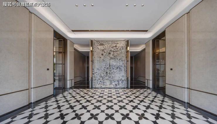 采用“王府中式”设计,大门为歇山顶形制(宽53米、高近11米),配黄铜狮、罗汉松及蓝翡翠奢石。园林融入西湖十景元素,如“花港观鱼”水景、“柳浪闻莺”绿植,并设雾森系统首层单元门厅石材铺就,肌理沉稳。