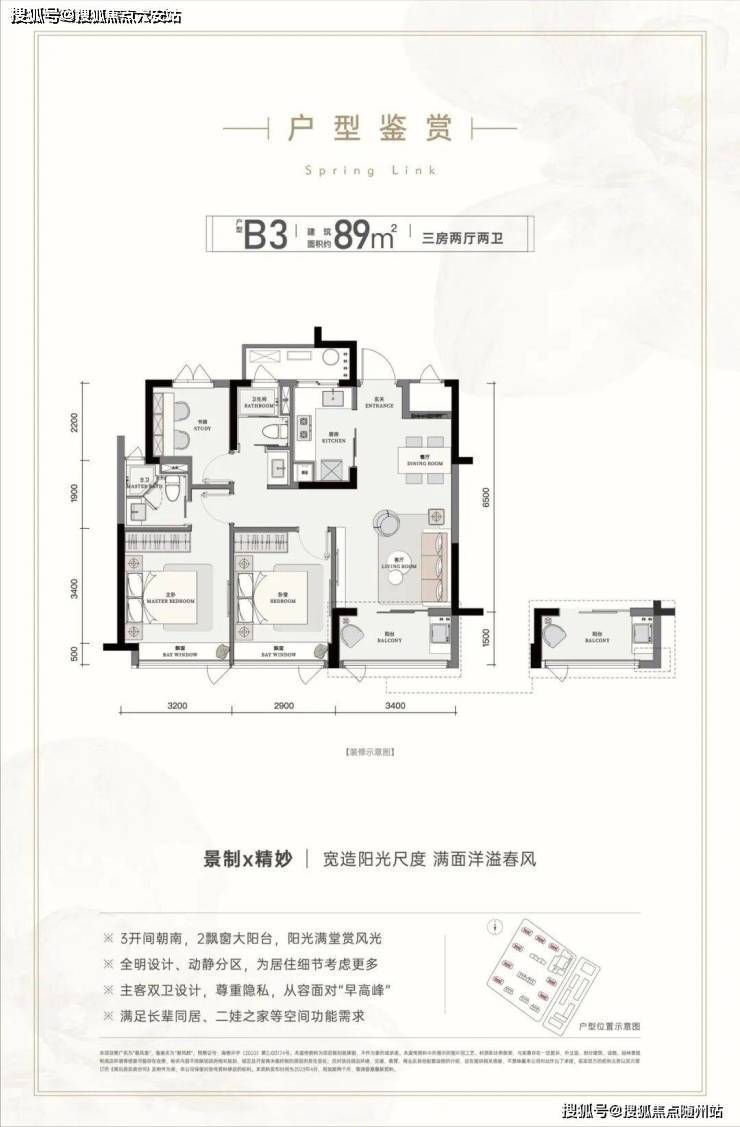 建面约89㎡的三房户型,三开间朝南,设计出了两条平行生活动线,巧妙地形成了一家人共聚的公区,以及由主卧、套卫、书房的“第二客厅”,满足年轻家庭的居住需求。蓝城春风里✅海宁蓝城春风里售楼热线:☎ 400 832 8823「售楼处」☎〢🔻已认证〢◆🔻
