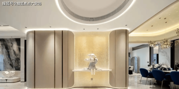 直线属于人类,曲线属于上帝,邱德光用其时尚艺术极富辨识度的曲线,呼应了江河的波涛。推开子母装甲门,映入眼帘的是皮革软包银箔玄关,圆形吊顶下坐着一个小女孩雕塑,叫探梦员,这一刻上升到了哲学思考,家不是富丽堂皇,而是让心放松的温柔乡。