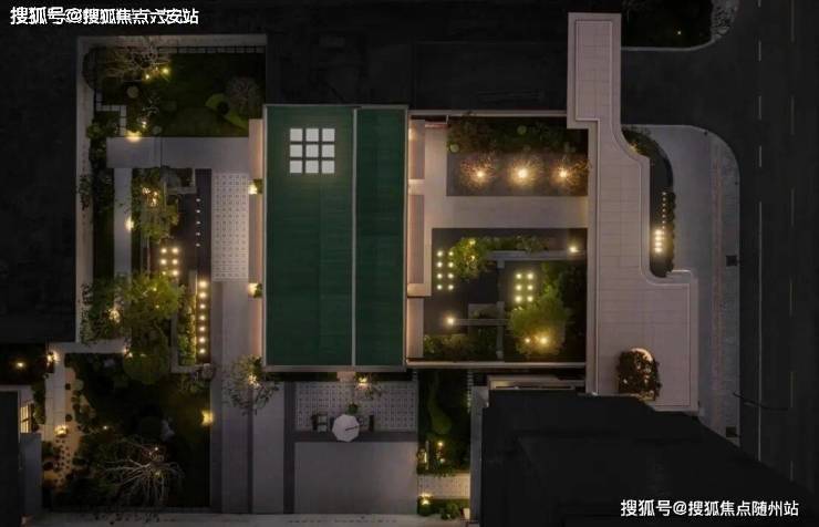 由主入口的叠水开始,水系就是贯穿整个园区的主题,也是视觉审美的灵魂。最令人心旷神怡的是最后一进景观——约400㎡的景观戏水池,绿植环绕四周,有如热带雨林。