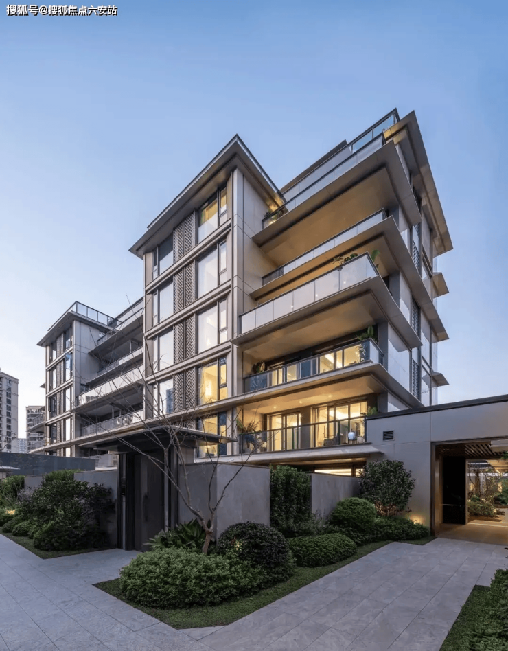 星润府宽近80米的主入口,以普拉达绿奢石为底座,镶嵌千年罗汉松,形成威仪棣棣的迎宾阵列。让业主拂去尘嚣,感受礼宾般的归家仪式感。项目采用暖银色铝板+三玻两腔玻璃,香槟金型材勾勒,弱化刚硬感,营造“隐奢”气质,视觉比一般的建筑更有质感。