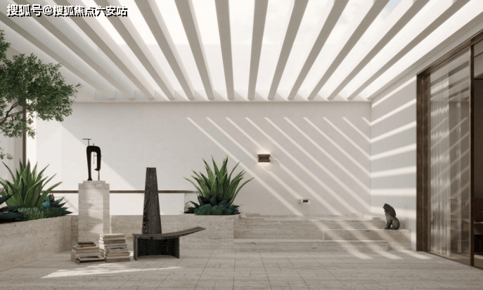 景观布局以漫步画境的形式,四进空间层层递进。开阔草坪拥抱社区的欢聚与庆典,禅意水院倒映天光云影,让喧嚣归于宁静;草坪与雅座编织邻里温情的日常;借叠水与留白唤醒返璞归真的本真。