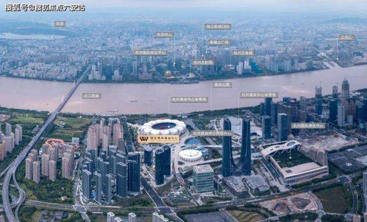 杭州,一江两翼、拥江发展,奥体博览城位于钱塘江主中心位置,承接大型体育赛事及会展盛世,打造城市的时代中心。