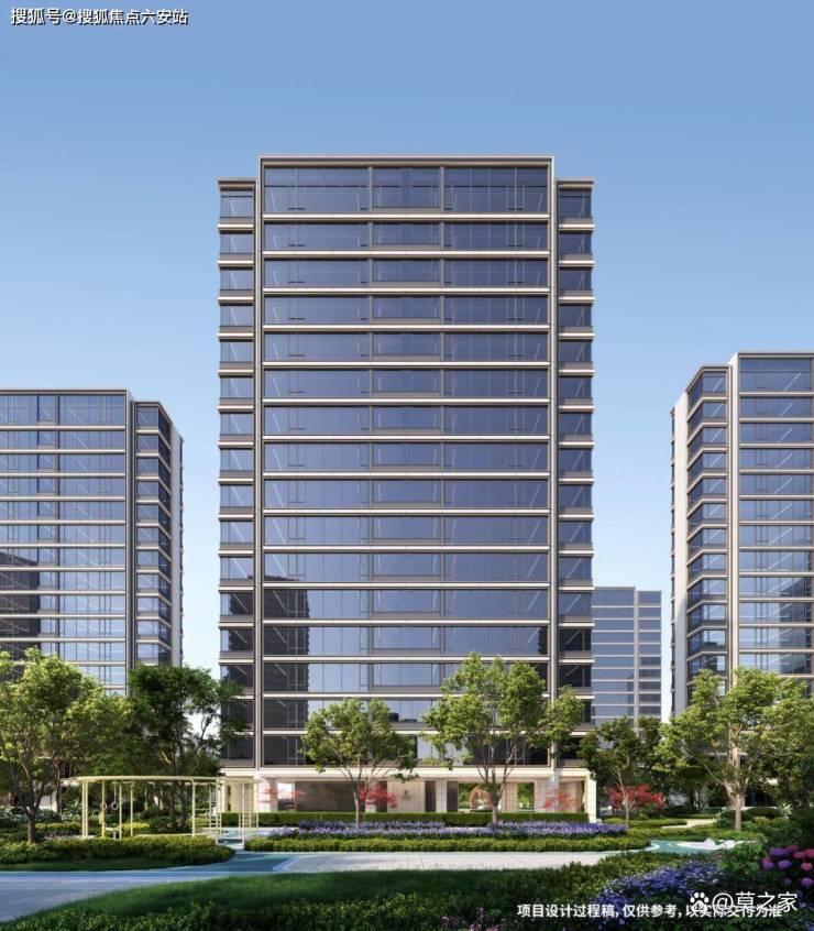 建筑美学上,高区以极简笔触勾勒,超纤细Bezel-less边框、大幅窗墙比与四面铝板公建化立面,彰显力量与序列感;低区基座选用白玫瑰石材,大面积玻璃与金属线条,营造温润亲近的体验。