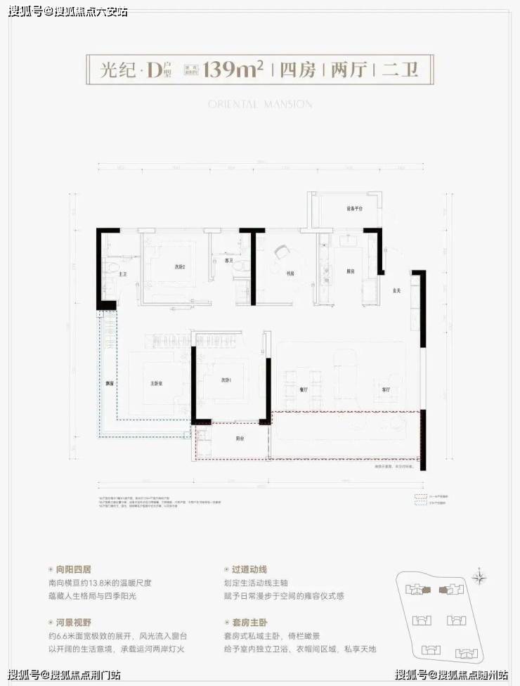 南向三开间朝南,约9.8米大面宽,约7米阔绰阳台,餐客厅贯通,并连接阳台,百变待客空间;套房式主卧,南联阔景飘窗,栖居更温馨舒适。