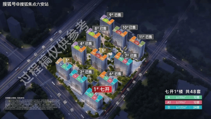 七开-1#面积:99㎡24套、120㎡24套,共计48套。