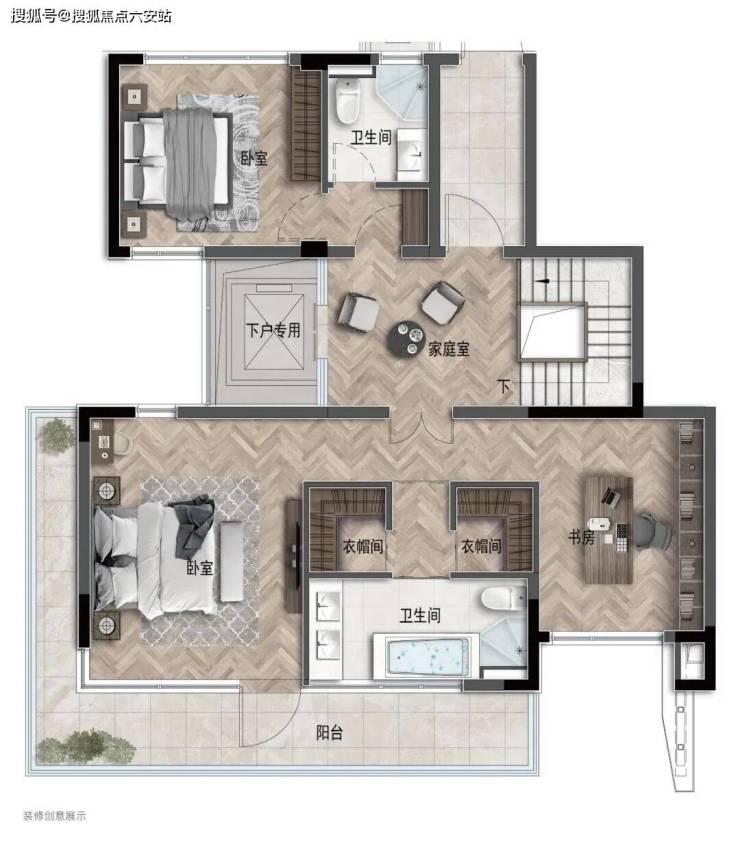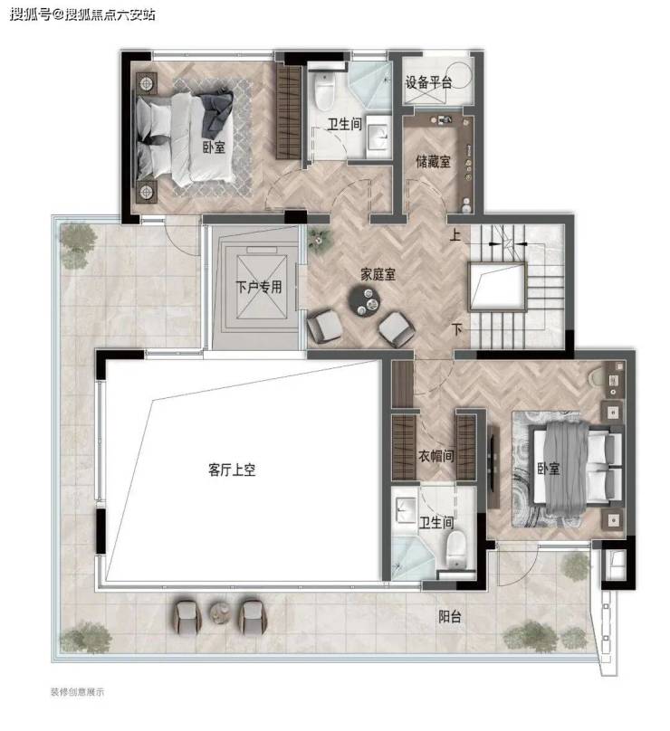动线优化:上下叠动静分区,上叠设置独立茶室与星空露台,下叠配置阳光会客厅,私密性评分达9.2分(满分10)。
