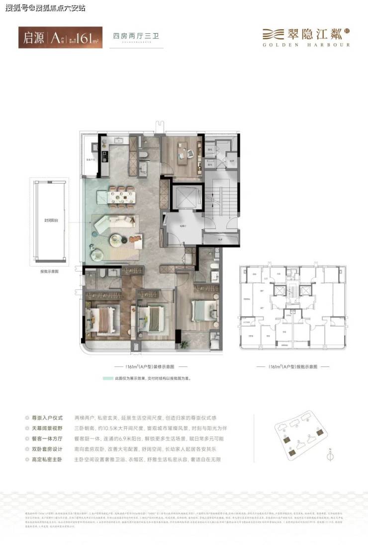 161㎡:全明电梯厅+独立玄关,双套房设计,餐客区44㎡;