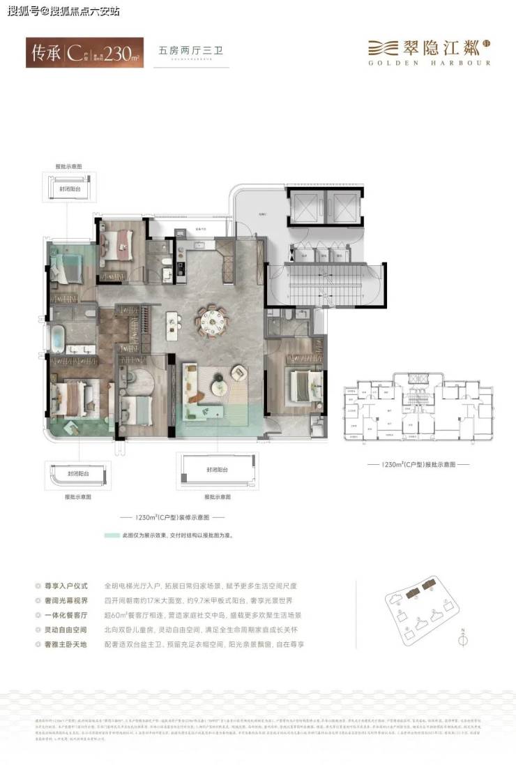 230㎡:17米南向面宽,66㎡餐客厅可拓展至8.9米,主卧套间4.3米面宽,特邀唐忠汉定制“隐奢逸境”。