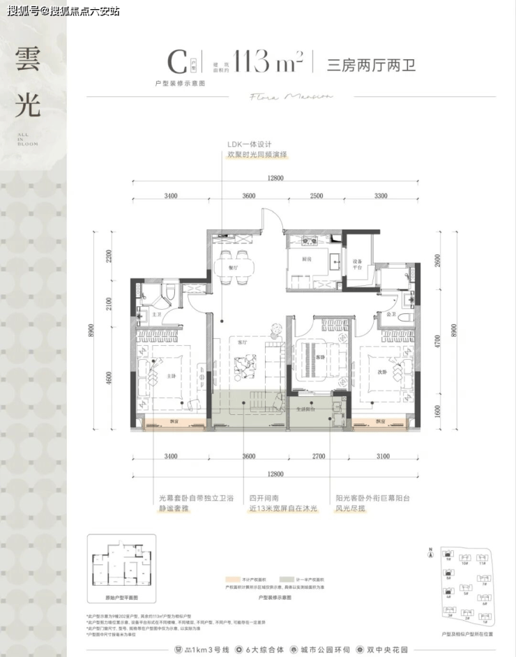 另一个是建面约113方的南厅户型,做到了四开间朝南,南向面宽达到了约12.8米,宛若了打开了“IMAX全面屏”。