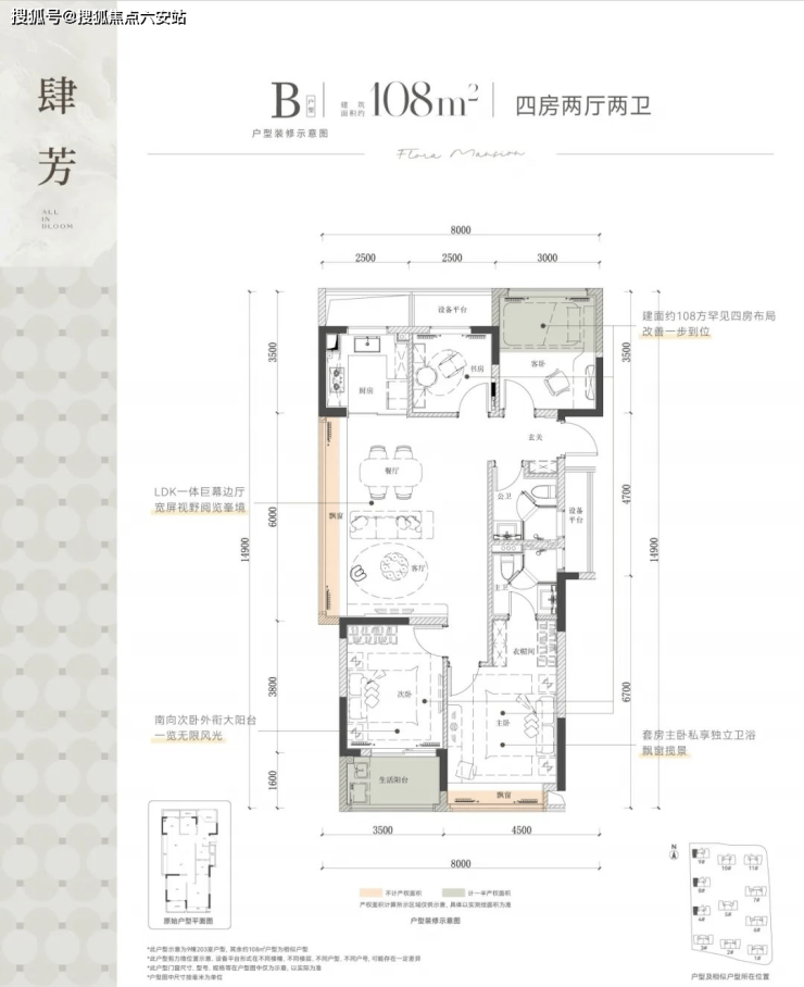 一个是建面约108方,不仅实现了四房功能,还是年轻人非常喜欢的边套设计。