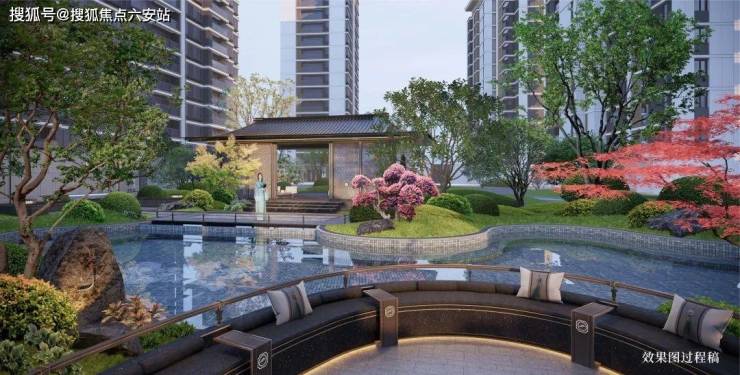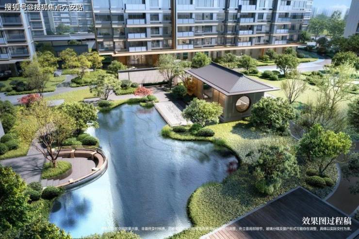 建筑风格:新中式风格,外立面采用三面铝板、首层石材、玻璃及浅灰深灰涂料,线条简洁雅致,彰显现代时尚感与文化底蕴。园林景观:以“一轴多境”为设计理念,打造错落有致的景观节点,包含迎宾水景、假山叠石、曲径通幽等,四季花卉争艳,绿树成荫。
