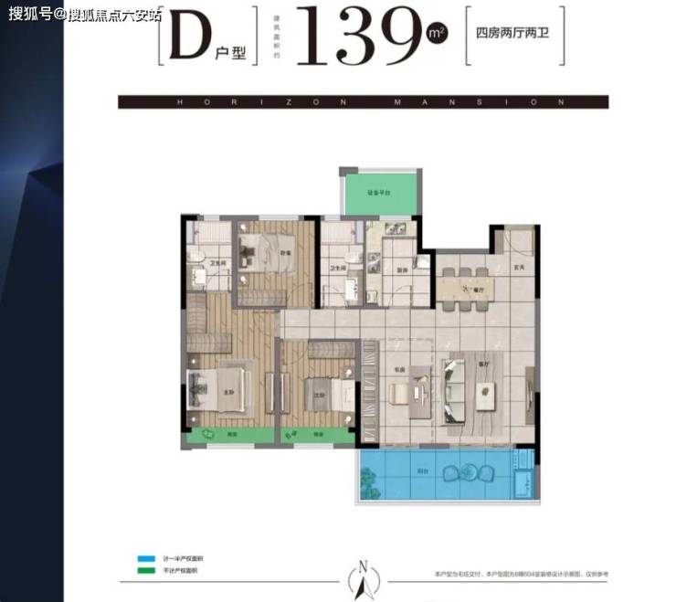 建筑面积约139㎡户型东西动静分区,完美划分“安静生活区”与“活跃生活区”,两种户型功能的处理,极具人性化色彩。