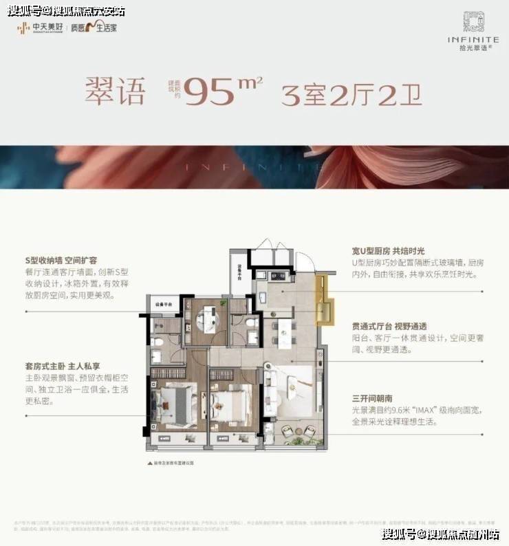 户型设计合理:项目提供95㎡和103㎡两种户型,均为精装修交付,满足改善型居住需求。户型设计充分考虑了居住者的生活需求,空间布局合理,动静分区明确。