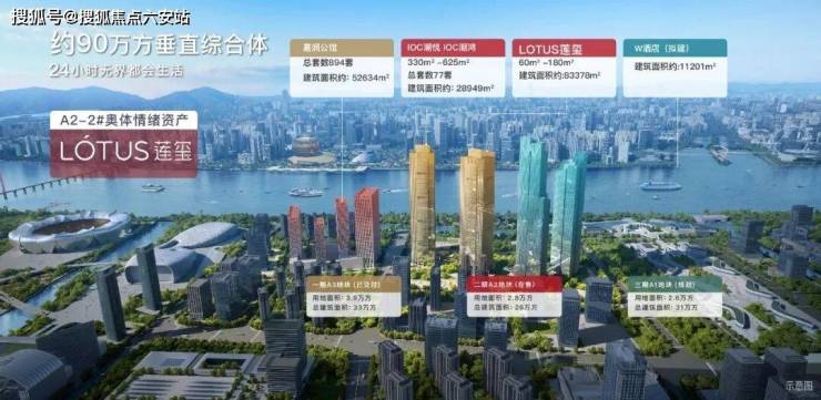 总体量:A1五星级酒店与甲级写字楼、在售A2 1366套高端公馆 A3在售大平层