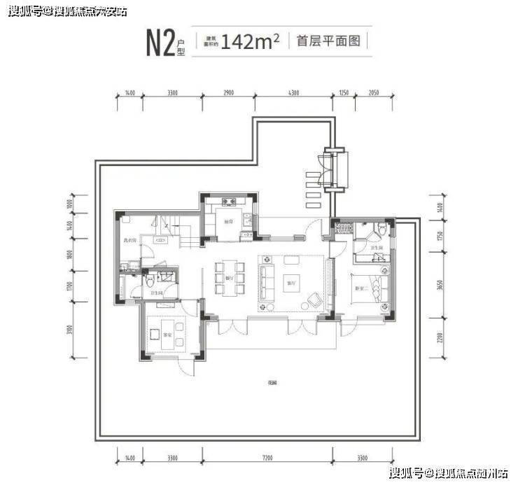 以约142㎡户型为例,可设计为4房4卫,一楼奢适的餐客一体大方厅,可作为一家人的度假生活中心,二楼还拥有两个套房,带孩子和父母周末小住、更带有约110㎡花园,足够你种上一圈花草修竹,摆一个茶几两把躺椅,夏天果树成荫,冬天红梅傲立,生活的烟火气立马就出来了。