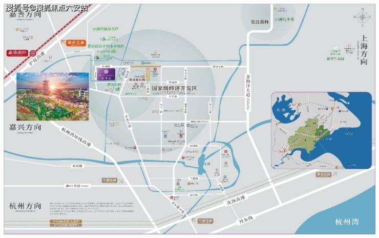 项目毗邻镇南路,连通平善大道,可快速接驳G60沪昆高速(直线距离约4.8公里)与嘉善南站(直线距离约5.6公里),实现环沪通勤圈。周边1公里内有10个公交站,公共交通便捷。
