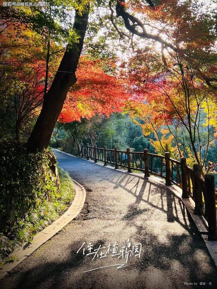 整个园区目光所及橙红橘绿,不是一种绿或一种黄,而是赭石、橙红、金棕与墨绿交织的厚实温暖,归家的杨梅山路上,两排水杉撑起橙红色天空,叶子如羽毛般打着旋儿缓缓落下,行驶在路上,时光也跟着慢了下来