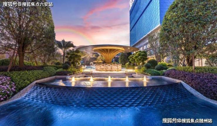 中央水景实图:景观灵感源自著名珠宝品牌CHAUMET,以“繁花造型珠宝”为设计理念,将大胆、华丽、创新于景观之中,形成特有的珠宝风格景观设计系统。