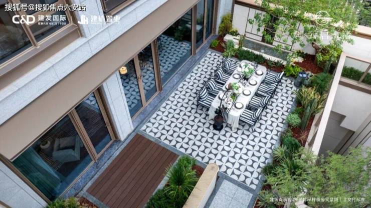 打破传统排屋的刻板布局,除了常规的首层双庭院(部分),2-4层都带露台或阳台,顶层更有星空大露台,延伸视野与空间的同时,也与自然更亲近,眺望云卷云舒,近赏庭院盛景,全明心境豁然开朗。03