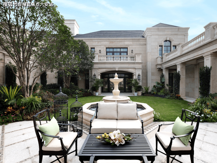 建筑风格:承袭法式建筑的优雅与浪漫,外立面采用全石材干挂,搭配雕花廊柱、老虎窗、斜坡屋顶等经典法式元素,彰显尊贵气质