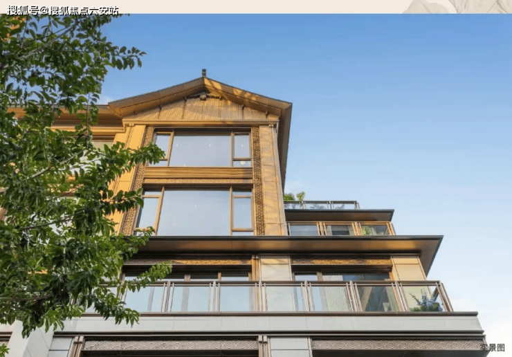 飞鸟屋脊挑檐的高层也自成其景,四面大面铝板+大面宽玻璃,以金线勾边,极具辨识度,如高台楼阁静立园中,进一步升华了宸云的中式禅境。