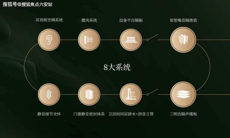 为了对抗噪音,项目采用了“8维静音系统”,这不仅是加厚隔音设备,而是从设备声、排水声、门窗外的噪音到邻里间的噪音的全维度降噪。