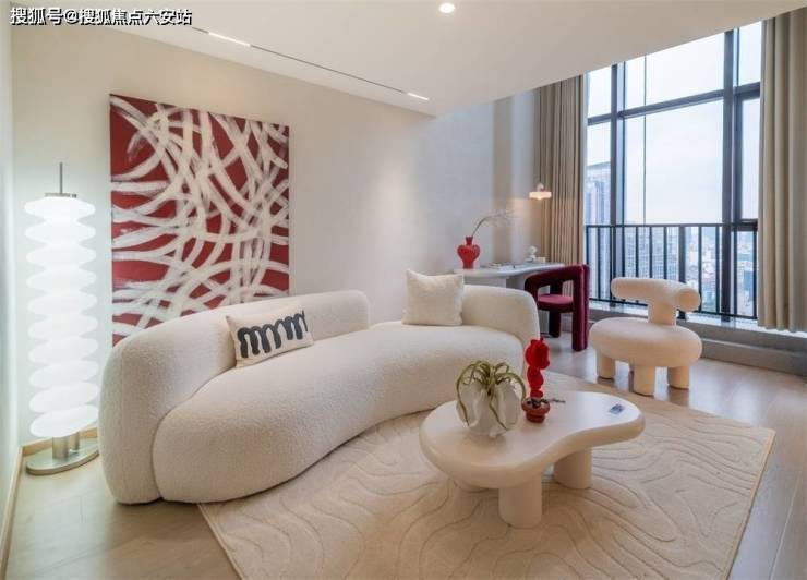 全景落地窗设计:约8米宽玻璃幕墙,框住城市天际线与江景风光,居住体验媲美大平层。
