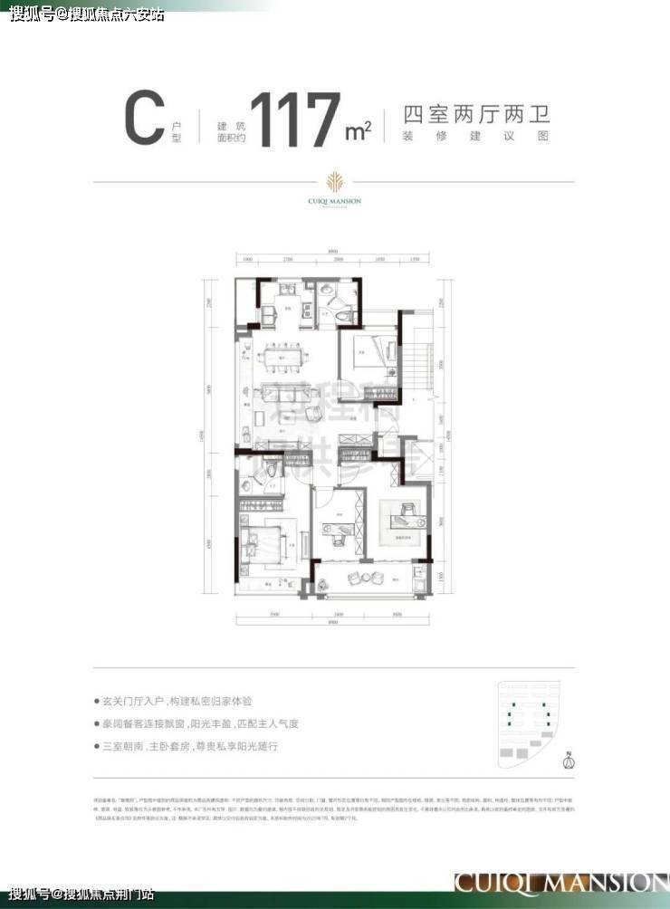 翠栖府的所有户型,都做到了一梯两户的设计,私密感很高。