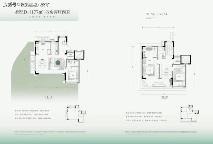 面积和形态的取舍一直是叠墅的一个难点。河印府叠墅实现了产品形态与面积的均好。相比市场那些动辄产权300+㎡甚至350+㎡的产品,其建筑面积约为136-176㎡,控制得当。虽然产权面积被有效控制,但墅居产品该有的空间感却没有减少,前庭后院、地下延展空间、屋顶空间.....一系列空间,与市场上300㎡+产品在尺度表现上并无太大差异。