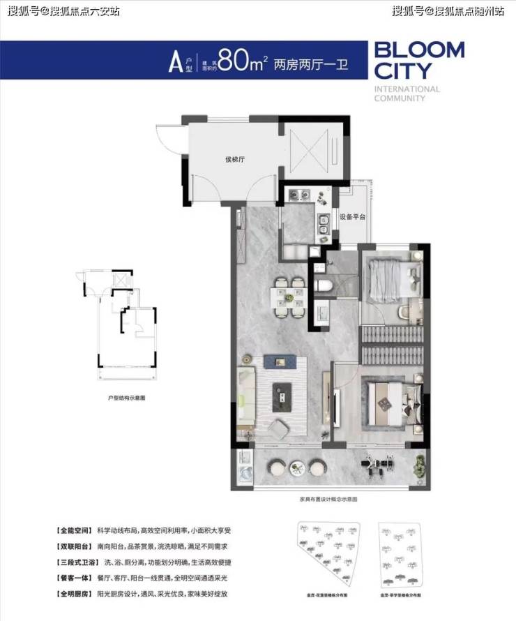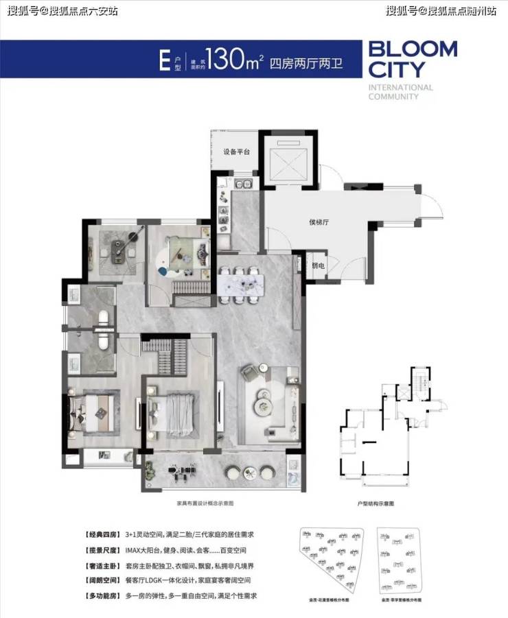 建面约80-130㎡户型空间,从灵活功能大双居,到三口之家、二胎家庭、进阶改善等,满足不同家庭需求。