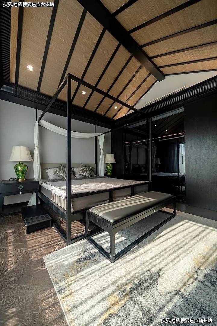 设计师还在卧室一隅设置了中国传统建筑中的“美人靠”元素,既是分隔空间的建筑构件,又承担了家具的功能,传统大户人家悠闲的情调就在于这些物件细节上。