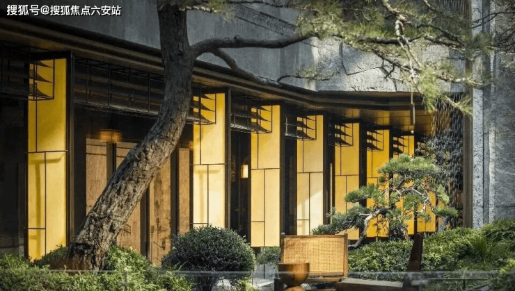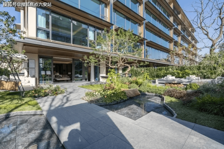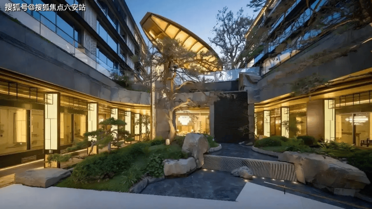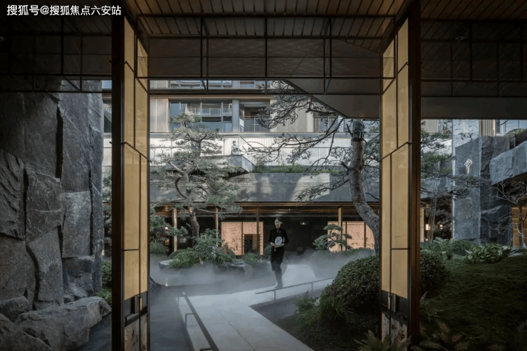 流瀑从金舟缓缓而下,流入了负一层的下沉式庭院,庭院里种满了又高又大的松树,四周一圈都是大块大块的老石皮,有野趣,也做出了贵重感。