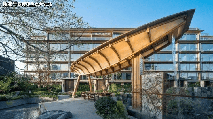 现在的新楼盘,做立体庭院已经不算什么新鲜事,但运河樾还更极致,一做就做了三层的园林。一层是「金舟花园」,以一叶金舟致敬千年的运河文化,也让地面花园有了一个别致的灰空间。